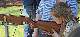 Auf dem Schießstand legen die Kinder unter freiem Himmel auf die Teile des Adlers an.